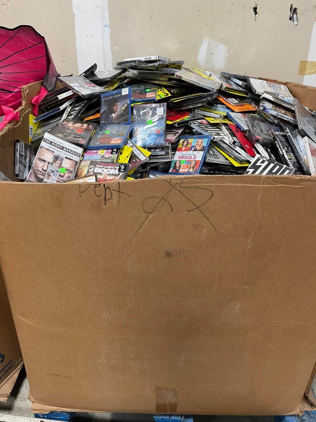 Amazon dvd pallet This is a mixed Gaylord pallet stuffed full of DVDs. This grade of material is raw. Gaylords weigh between 400 and 550 lbs and contain 1400 to 1700. There may be some games mixed in with the DVDs. This is exactly as the DVDs arrive at our warehouse. Conditions range from acceptable to like new. The DVDs are completely random. The movies are authentic and are the same movies found at major retailers nationwide. Although the vast majority are in fine condition, we can not guarantee that there are no duplicate titles or that all DVDs are present in the case.